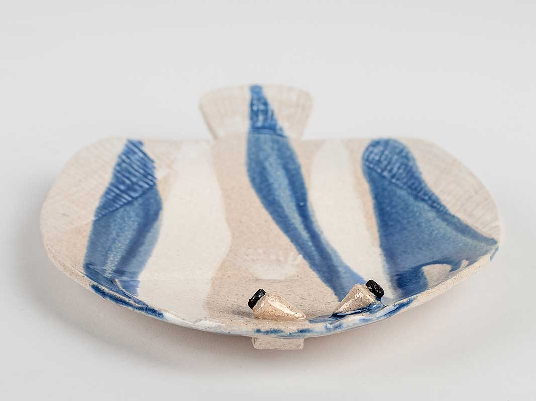 Decora sus platos con esgrafiados sobre la superficie de las piezas, engobes y esmaltes de alta, que emulan cromáticamente las «criaturas» naturales en las que se inspiran con trazos largos y caligráficos de pincel. En la base de las piezas reserva un pequeño espacio para la pedagogía, esmalta una pequeña zona donde, con un lenguaje entre naif y manga, dibuja la «criatura» referente natural y escribe su nombre (el del pescado).