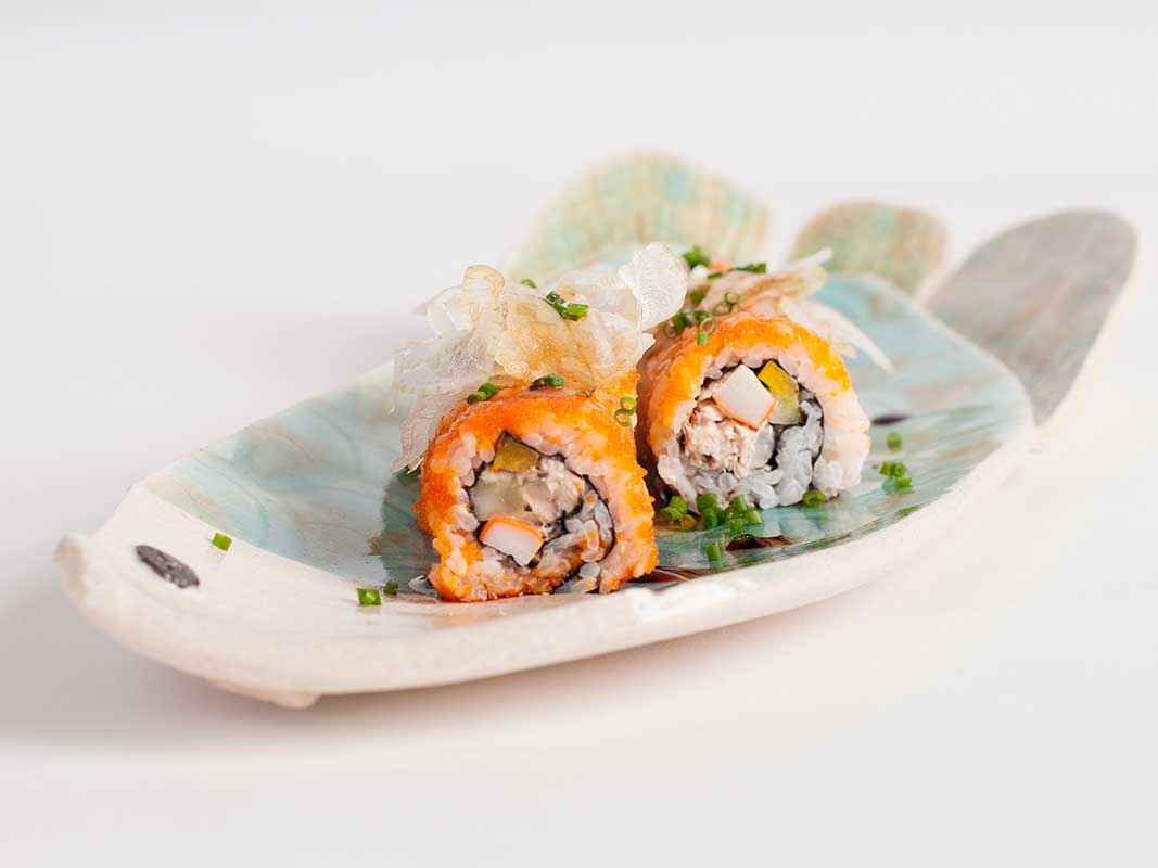 En la «criatura» arawana ha emplatado “Tobiko Uramaki˝ un Maki Sushi de verduritas y la «criatura» caballa decorado con huevas de pez volador. En el lenguado se ha tomado la libertad de emplatar un postre tradicional japonés «Daifuku», la envoltura es de pasta de arroz y el relleno de judías dulces.