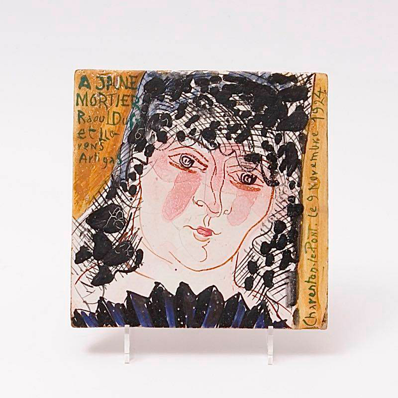 Esta pieza, conocida como “Mujer con mantilla”, está dedicada a Jane Mortier, una famosa pianista que vivió en los años veinte en París, frecuentando los círculos literarios y artísticos. El Musée des Arts Décoratifs de París cuenta con un retrato de Emilienne Dufy, realizado también por Dufy y Artigas, que fue realizado el mismo día.
