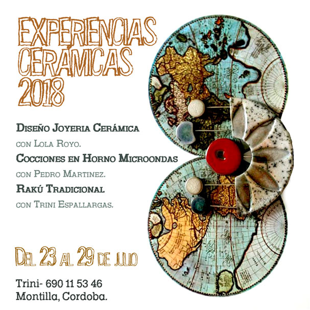 Del 23 al 29 de julio Lola Royo, Pedro Martínez y Trini Espallargas impartirán, en el taller Sula de Montilla, Córdoba, un curso intensivo que incluye diseño de Joyería cerámica, cocciones en horno microondas y rakú tradicional.
