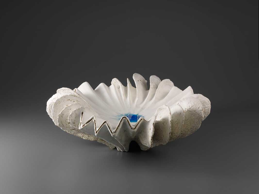 La galería contará en primer lugar con Koike Shōko, en septiembre y octubre, con “Shifting Rhythms: The Sculpted Moments of Koike Shōko”, la tercera exposición individual de esta artista en Joan B Mirviss LTD. Koike siempre se ha inspirado en los tonos azules creados por el cielo que se refleja en el mar. Al principio de su carrera, comenzó a agregar escamas de vidrio a sus veladuras creando un “charco” azul a través del cual se percibían formas parecidas a conchas. A continuación, dio la dimensionalidad a las “conchas” esculpiéndolas en arcilla. Estas formas parecidas a conchas combinadas con el barniz azul encharcado en tonos que van del azul persa al turquesa, sirven como base conceptual para sus trabajos en arcilla. Mientras que sus formas en espiral se encuentran en la naturaleza, la fuerza centrífuga generada por Koike al usar el torno del alfarero para crearlas evoca para ella los ritmos del universo más allá de los del océano.