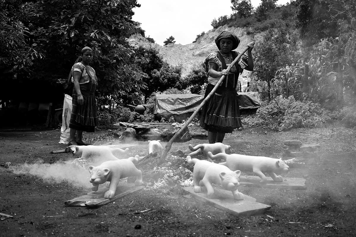 En algunas entidades alfareras, todavía se quema a “cielo abierto” como se hacía desde la época prehispánica, esto quiere decir al ras del suelo improvisando un horno efímero.