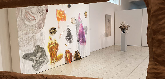 Lucía Delfino, con “Nos miro de afuera”, un título inquietante, nos detiene en una gramática fallida que potencia el clima poético de la obra. Una instalación que nos hace parte de un mundo íntimo y ficcional donde el barro se vuelve materia divina. Ya no ensucia, tampoco tapa. Aparece como un elemento develador. Así conceptualiza su trabajo Lucía: “Un arreglo floral, sumergido, pintado, cubierto en barbotina. Una pintura con el retrato de una persona, realizado también con barbotina levemente coloreada. Ambos se encuentran como suspendidos en un mismo estado de ánimo, rígidos y en reposo, mientras esperan tal vez echarse a perder. El material con el que se encuentran hechos refuerza lo inexorable del paso del tiempo, de la transformación, a la vez que intenta inútilmente fijarlo, endurecerlo. Dentro y fuera del retrato, la figura y las flores dialogan entre sí acerca del carácter de la representación. Las flores, como objeto real, se vuelven representación al ubicarse ahí, la arcilla refuerza en su gesto y al cubrirlas, su nuevo carácter ficcional. Los ojos del personaje, dirigidos hacia el arreglo, lo intentan despegar de la bidimensión y en cierta forma, de su carácter de representación”.