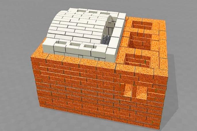 Llegado al punto de la construcción donde dejamos el horno en el anterior artículo, continuamos con las siguientes hiladas, siguiendo la misma disposición de elementos, con lo que ganamos en altura (figura 1). Llegados a este punto, se hace necesaria la construcción de la bóveda que cubra el hogar. Se observa en esta imagen que en la parte baja de la pared frontal del hogar se han empleado ladrillos densos, de mayor resistencia al impacto, ya que en esta pared van a golpear muchos de los troncos que introduzcamos para alimentar el horno; en cambio el hogar se continua con ladrillos porosos tipo JM23 en las zonas expuestas a mayor temperatura.