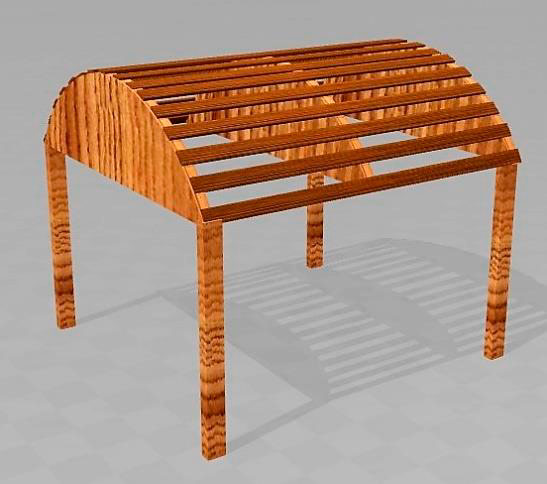 La cimbra es una estructura de madera que tiene la forma de la bóveda y sobre la cual se construye esta. Su construcción será muy sencilla dado que nuestra bóveda es bastante pequeña. Para ello necesitamos un tablero de aglomerado de 90 x 45 cm de 1,5 cm de espesor y entre 15 y 20 listones de 1 cm de espesor, 2 cm de ancho y 58,5 cm de largo. De este tablero cortaremos tres segmentos de círculo como el que se muestra en la figura 4.