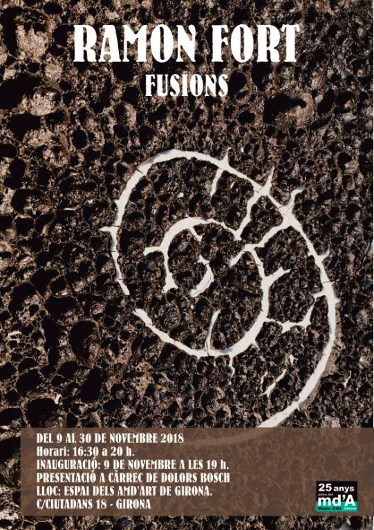 Del 9 al 30 de noviembre se puede visitar la exposición de cerámica de Ramón Fort, titulada “Fusions”, en la sala de exposiciones de la AMD’Art de Girona (Amics del Museu d’Art de Girona)