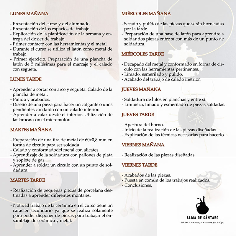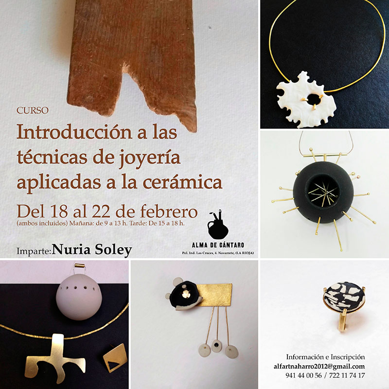 Del 18 al 22 de febrero se celebrará en Navarrete, La Rioja, el curso “Introducción a las técnicas de joyería aplicadas a la cerámica”, impartido por Núria Soley en el taller Alma de Cántaro
