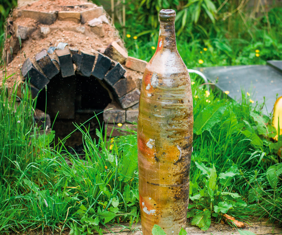 Mis piezas están hechas para tratar de reflejar lo que suceda en el horno. Mis cocciones duran cuatro días, y hago mucho con el fuego. No se trata solo de conseguir la temperatura. Me gusta poner piezas de lado, rodearlas con brasas cuando estoy cargando leña y jugar con el camino de la llama. A veces las piezas se vuelcan, y aunque trato de corregirlas, es muy difícil cuando el horno está a 1.300 °C. Las cerámicas en la parte delantera a menudo están pegadas, me gusta poner unas sobre otras y esto puede funcionar muy bien pero es una gran apuesta. Algunas cocciones son casi perfectas, en otras casi todo está dañado. Para obtener una buena pieza, es posible que tengas que sacrificar tres o cuatro. Por lo general, hay una pieza obvia para romper y podemos separarla, pero cuando tienes dos hermosas piezas unidas, se convierte en un dilema. Sin embargo, ¿eso no hace que la que sobrevive sea el doble de especial?
