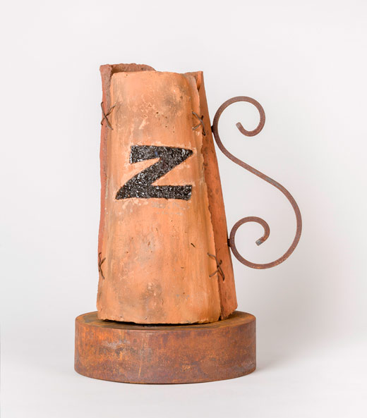 La serie de los jarrones consta de 15 piezas absolutamente nuevas en la carrera del artista. Realizados con tejas de barro cosidas con hierro (tal vez en un homenaje del artista a las lañas de las cerámicas históricas de la tradición española) incorporan también incrustaciones en cristal. Se trata de uno de los últimos trabajos del artista, un conjunto de grandes jarrones con enorme personalidad.