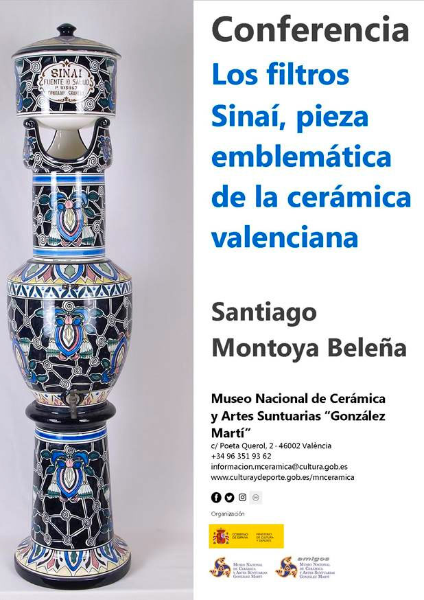 El Museo Nacional de Cerámica y Artes Suntuarias “González Martí” presentará el próximo jueves 21 de marzo a las 19 h la conferencia “Los filtros Sinaí, pieza emblemática de la cerámica valenciana” impartida por Santiago Montoya Beleña