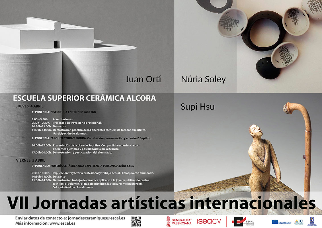 Los días 4 y 5 de abril tendrán lugar las “VII Jornadas Internacionales de Cerámica “en la Escola Superior de Ceràmica de l’Alcora (Castellón) que contarán con la presencia de Juan Ortí, Núria Soley y Supi Hsu