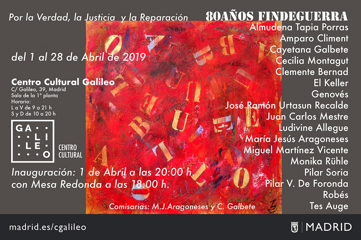 Del 1 al 28 de abril se puede visitar en el Centro Cultural Galileo, de Madrid, la exposición colectiva titulada “80 Años Fin de Guerra”, en la que participa la ceramista Pilar Soria