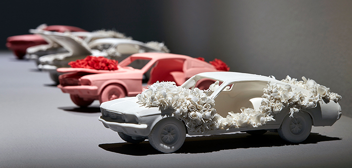 Noemi Iglesias ha expuesto el pasado mes de abril en la Cubic Gallery del Gimhae Clayarch Museum de Corea del Sur. “Everlasting”, título de la instalación que presentó en la sala, es una edición limitada en porcelana de 8 coches de boda. El modelo de coche elegido es una replica del popular Ford Mustang del 67 decorado con un meticuloso trabajo floral hecho a mano.