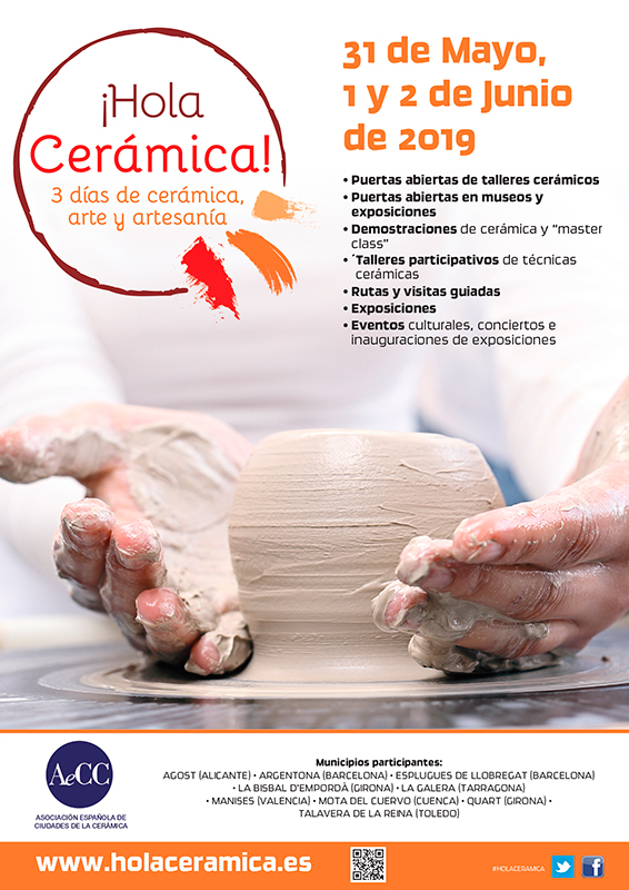 ¡Hola Cerámica! de una actividad de dinamización de la cerámica en los municipios afiliados a la Asociación Española de Ciudades de la Cerámica (AeCC) y de difusión a un público amplio de todo el país a través de los medios de comunicación.