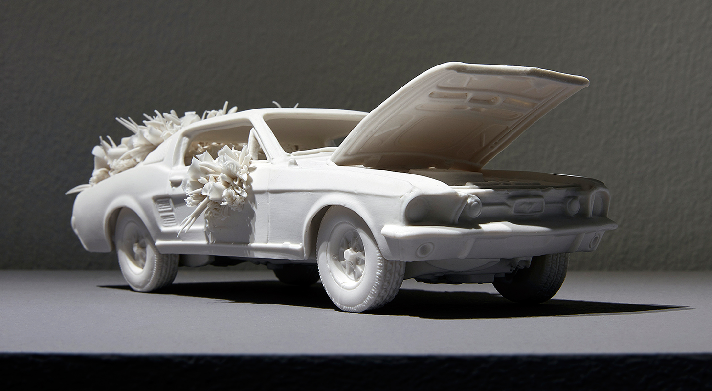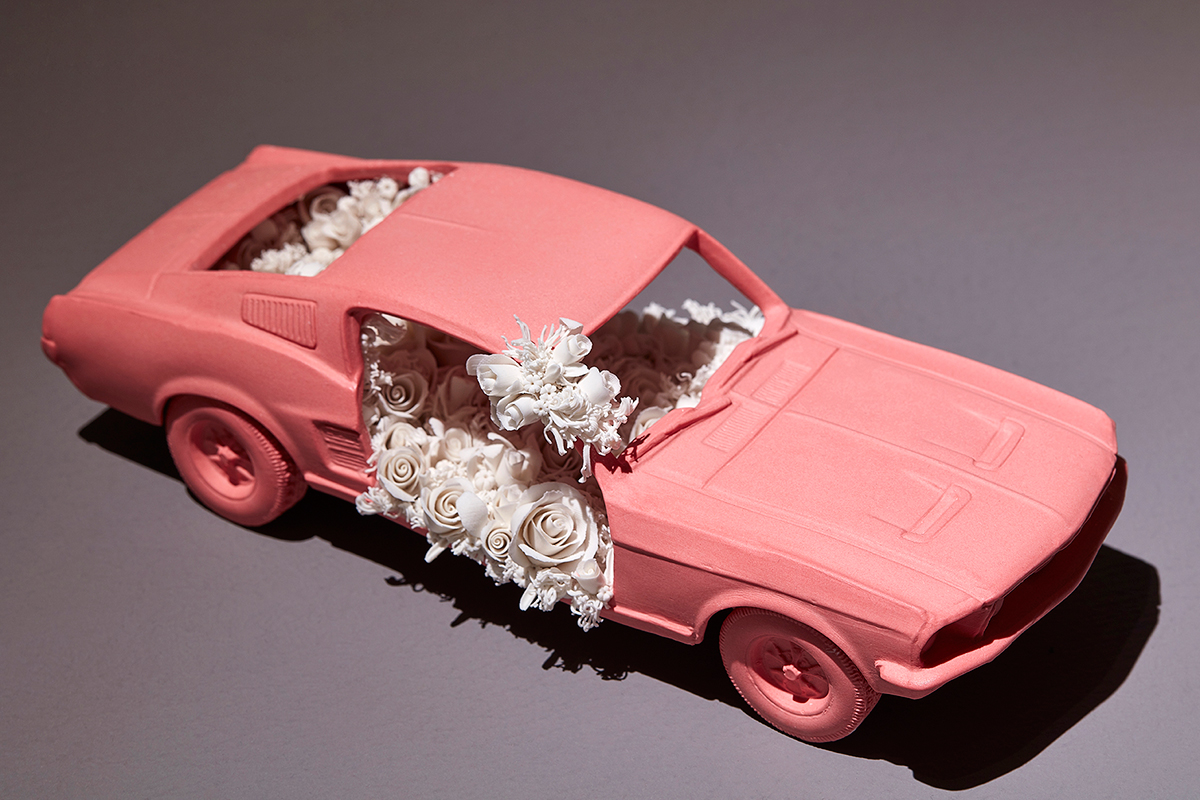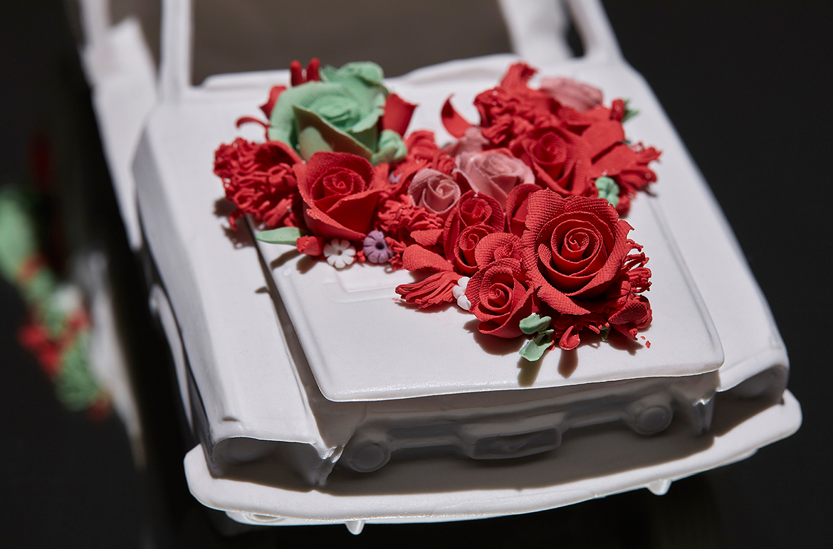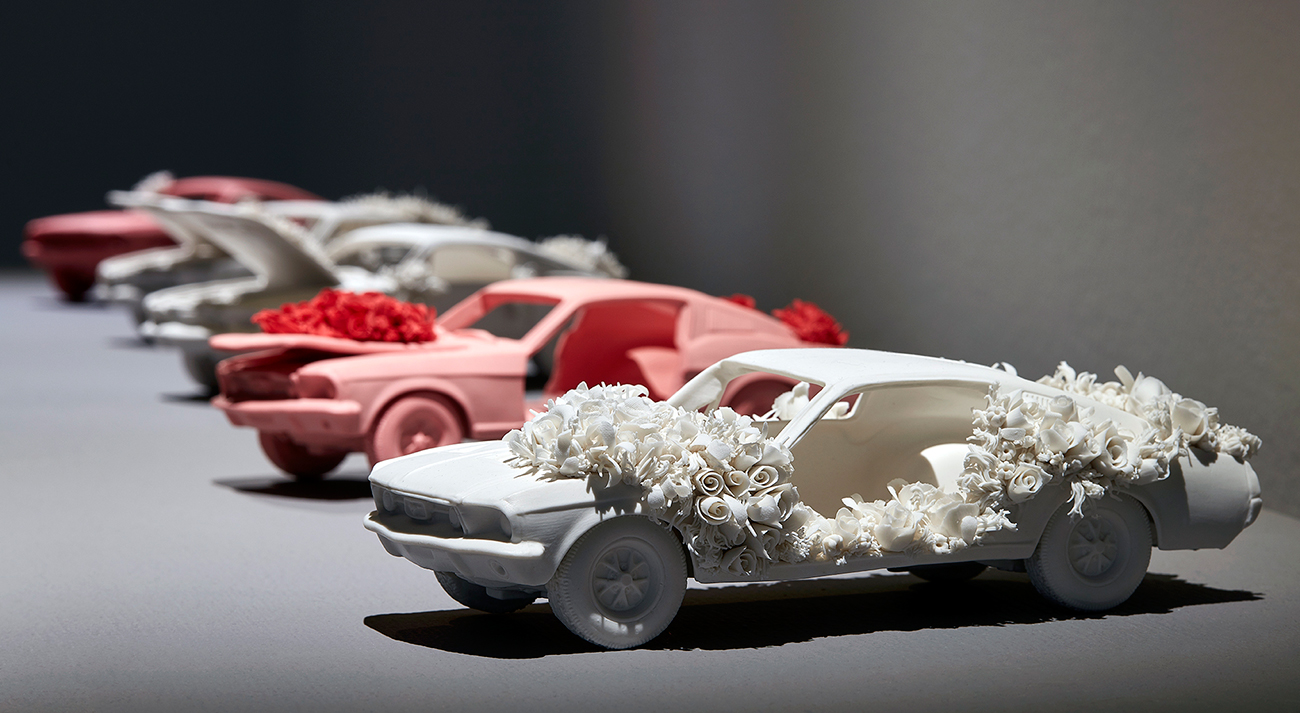 Noemi Iglesias ha expuesto el pasado mes de abril en la Cubic Gallery del Gimhae Clayarch Museum de Corea del Sur. “Everlasting”, título de la instalación que presentó en la sala, es una edición limitada en porcelana de 8 coches de boda. El modelo de coche elegido es una replica del popular Ford Mustang del 67 decorado con un meticuloso trabajo floral hecho a mano.