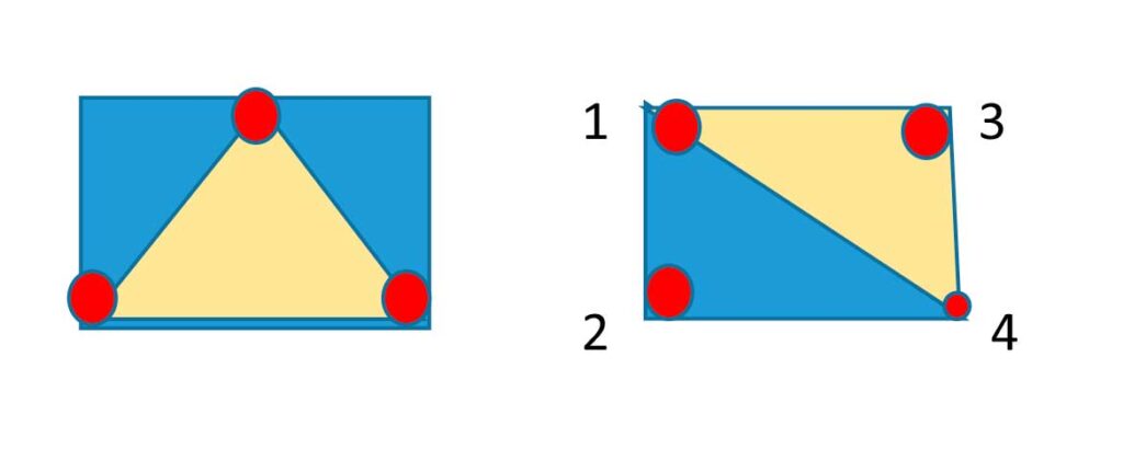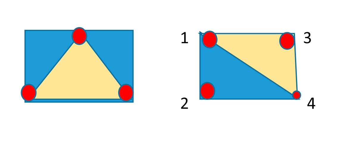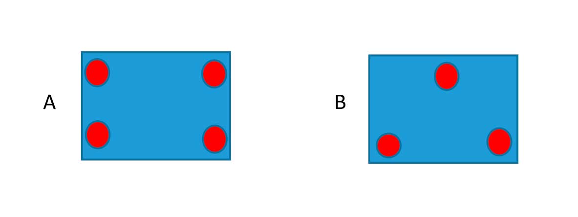 Con 4 soportes es difícil conseguir un plano perfecto y la placa puede quedar inestable, con 3 puntos de apoyo se forma un plano y las placas no pueden bailar. Las dos placas, A y B, reciben el mismo peso, pero tenemos que tener en cuenta que si ponemos barro en el soporte, aunque aparentemente quede estable, una vez el barro contraiga puede quedar media placa suspendida en el aire y el soporte 4 con el calor puede ceder y romper. Con 3 puntos de apoyo las contracciones y dilataciones son de más fácil asimilación por la placa.
