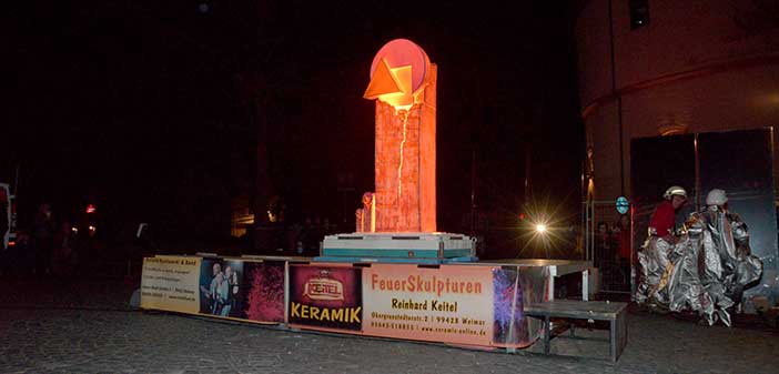 El pasado 7 de abril se celebró en la Goetheplatz, en Weimar (Alemania) el espectáculo de la cocción en directo de la escultura monumental “Reminiscence Bauhaus”, con motivo de los 100 años de la fundación de la Bauhaus
