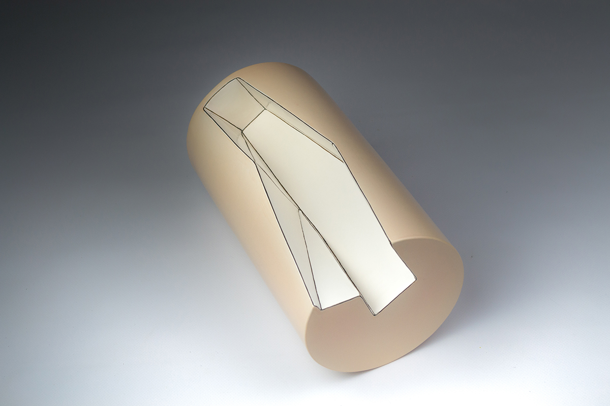 CABECERA DE LÍNEA intenta alterar y trastocar un vacio, un espacio imaginario que se me aparece al abrir un cilindro, guiado por una línea negra que aparcela y distribuye planos y secciones, creando aperturas y recovecos que rompen sus limites.