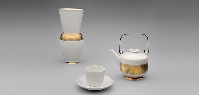 Foto: Jarrón y juego de té, 1928–33. Halle, Alemania. Porcelana y esmalte. (Collection of Forrest L. Merrill.)
