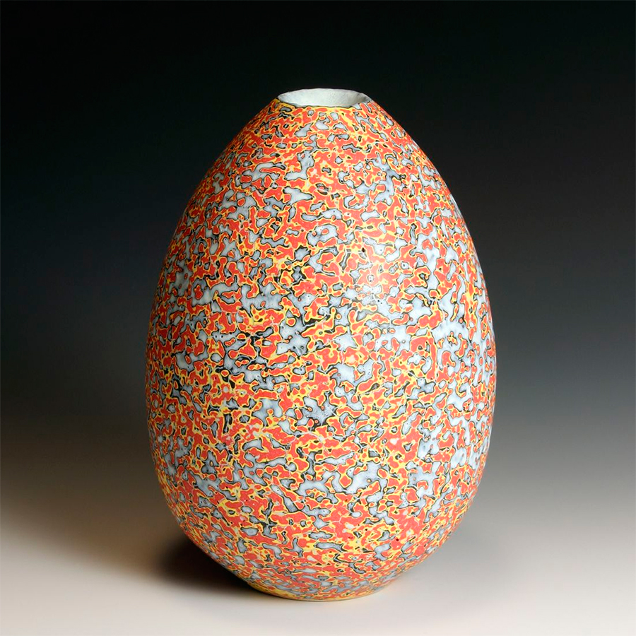 Peter Beard vive en Warwickshire (Reino Unido) y su carrera profesional comenzó en 1975, su obra actual combina formas simples y poderosas con intrincados efectos de colores en la superficie.