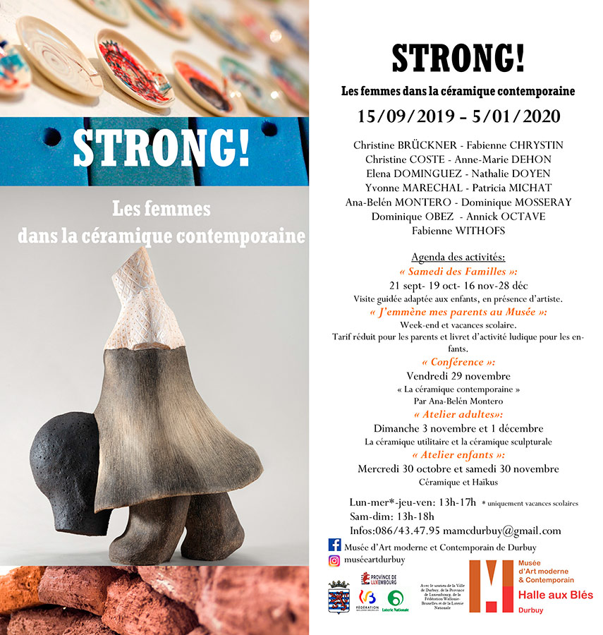 Del 14 de Septiembre 2019 al 5 de Enero 2020 se puede visitar en el Museo de arte moderno y contemporáneo de Durbuy (Bélgica) la exposición titulada “Strong! Mujeres en la cerámica contemporánea”