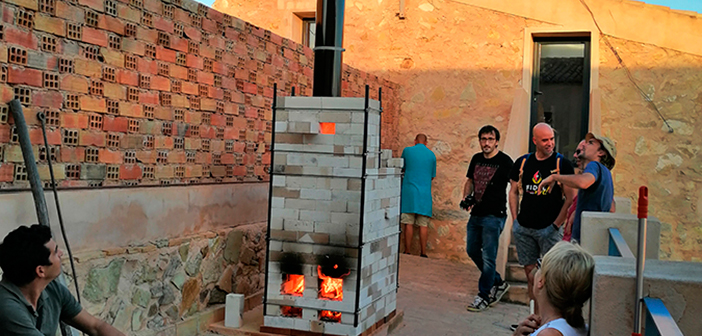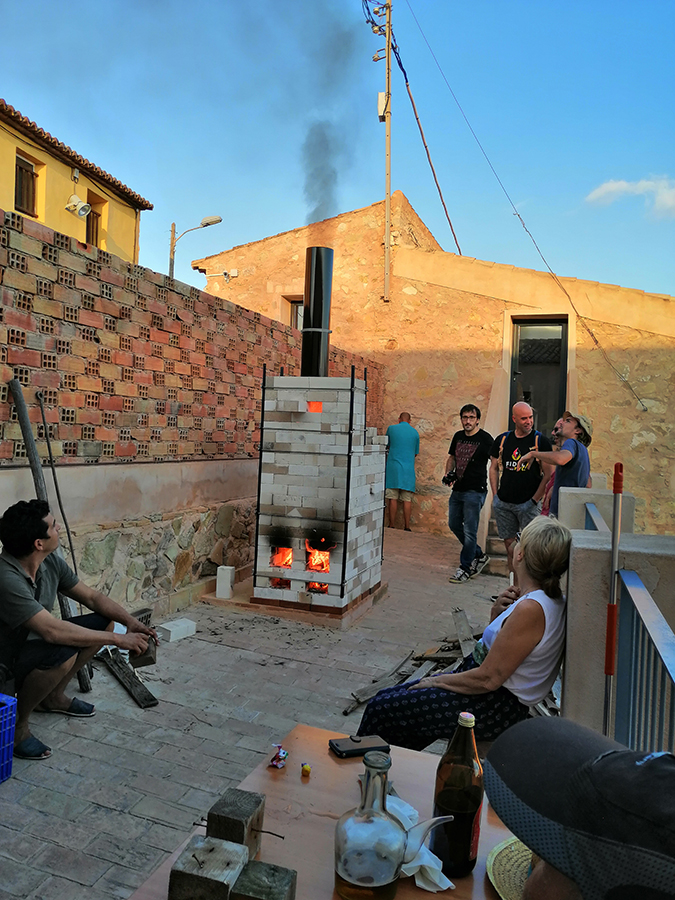 La construcción propiamente dicha tuvo lugar el viernes por la tarde, y los participantes pudieron comprobar que, más que un curso exclusivamente para la construcción de “este” horno, en el curso traté de ofrecer las herramientas y conocimientos que permitan variar el diseño en función de las necesidades, materiales o capacidades. ¡De hecho yo mismo modifique algunas cosas del horno sobre la marcha!