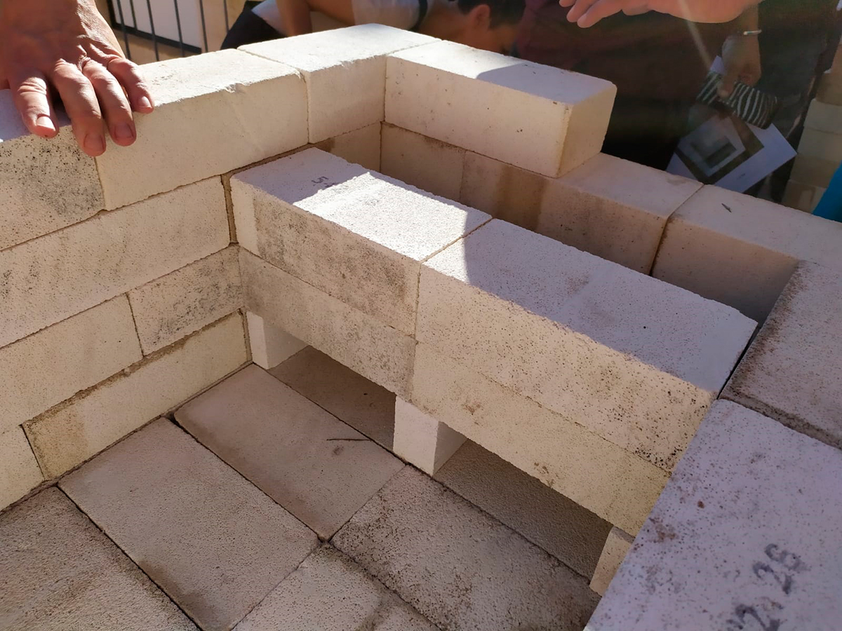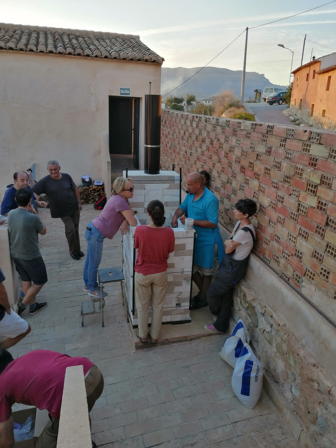 Construcción del horno, puede verse la facilidad del proceso de construcción, ya que se hace completamente en seco, sin utilizar refractarios, cementos o fibra