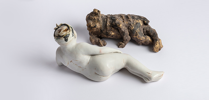 Foto: “Paula und John”, 2017 / 2019 Porcelana. 15 x 32 x 12 cm / 13 x 27 x 13 cm. (Fotografía: Tina Dietz.)