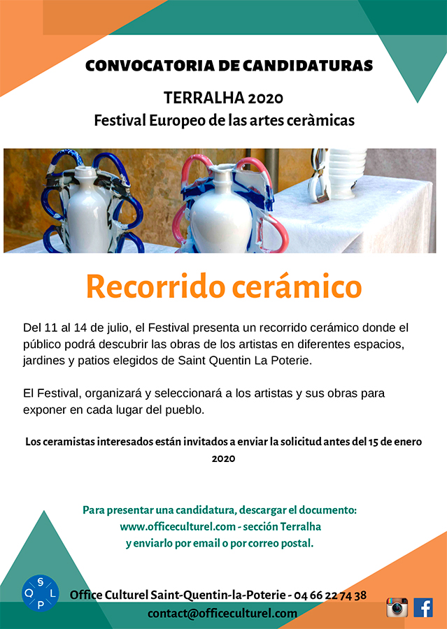 Ya se pueden enviar las solicitudes de participación para el Festival Europeo de las Artes Cerámicas Terralha 2020, que se celebrará en la localidad francesa de St-Quentin-la-Poterie