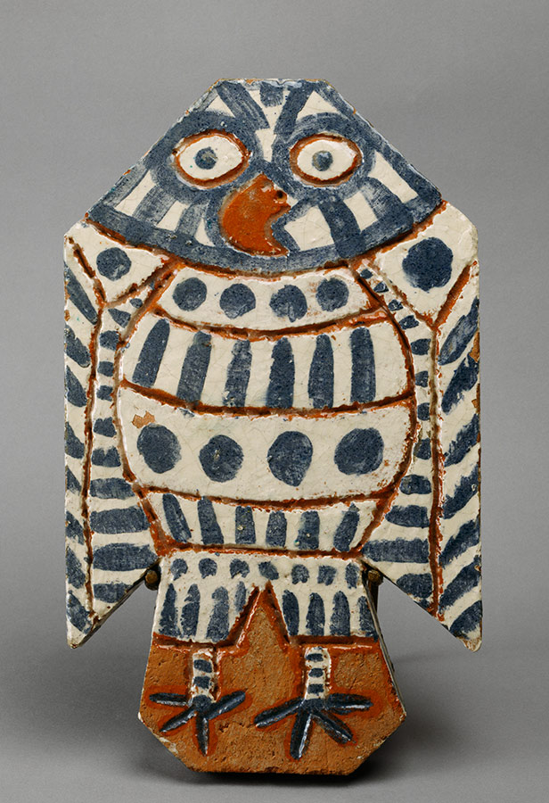 “Tomette découpée et décorée en forme de chouette”, 1957, Cannes-Vallauris. 33,5 x 20 x 4 cm. Musée National Picasso – Paris. ©Succession Picasso / Ph: RMN- Grand Palais (Musée National Picasso – Paris) / Béatrice Hatala