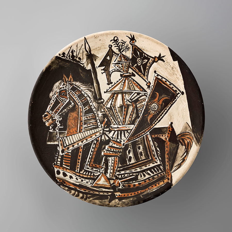 “Assiette décorée d’une scène de tournoi: cavalier en armure”. 1951. 2,5 × 22,5 cm, Musée National Picasso – Paris. ©Succession Picasso / Ph: RMN- Grand Palais (Musée National Picasso – Paris) / Mathieu Rabeau