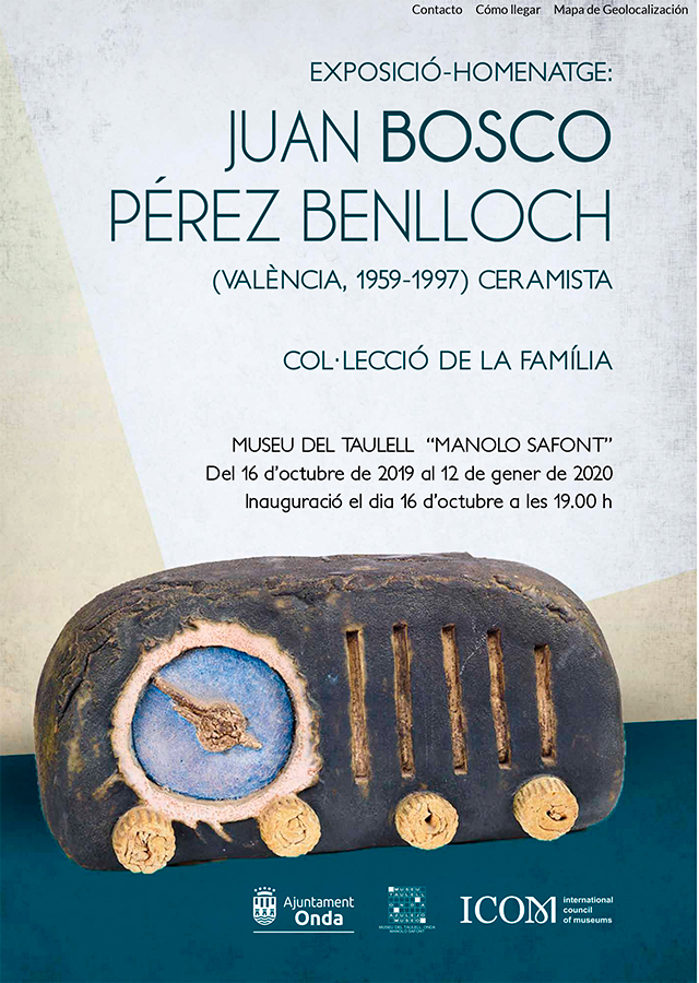 El miércoles 16 de octubre se inaugura en el Museu del Taulell la exposición-homenaje “Juan Bosco Pérez Benlloch (València 1959-1997) Ceramista. Col.leccióde la Família”, que se podrá visitar hasta el 12 de enero de 2020