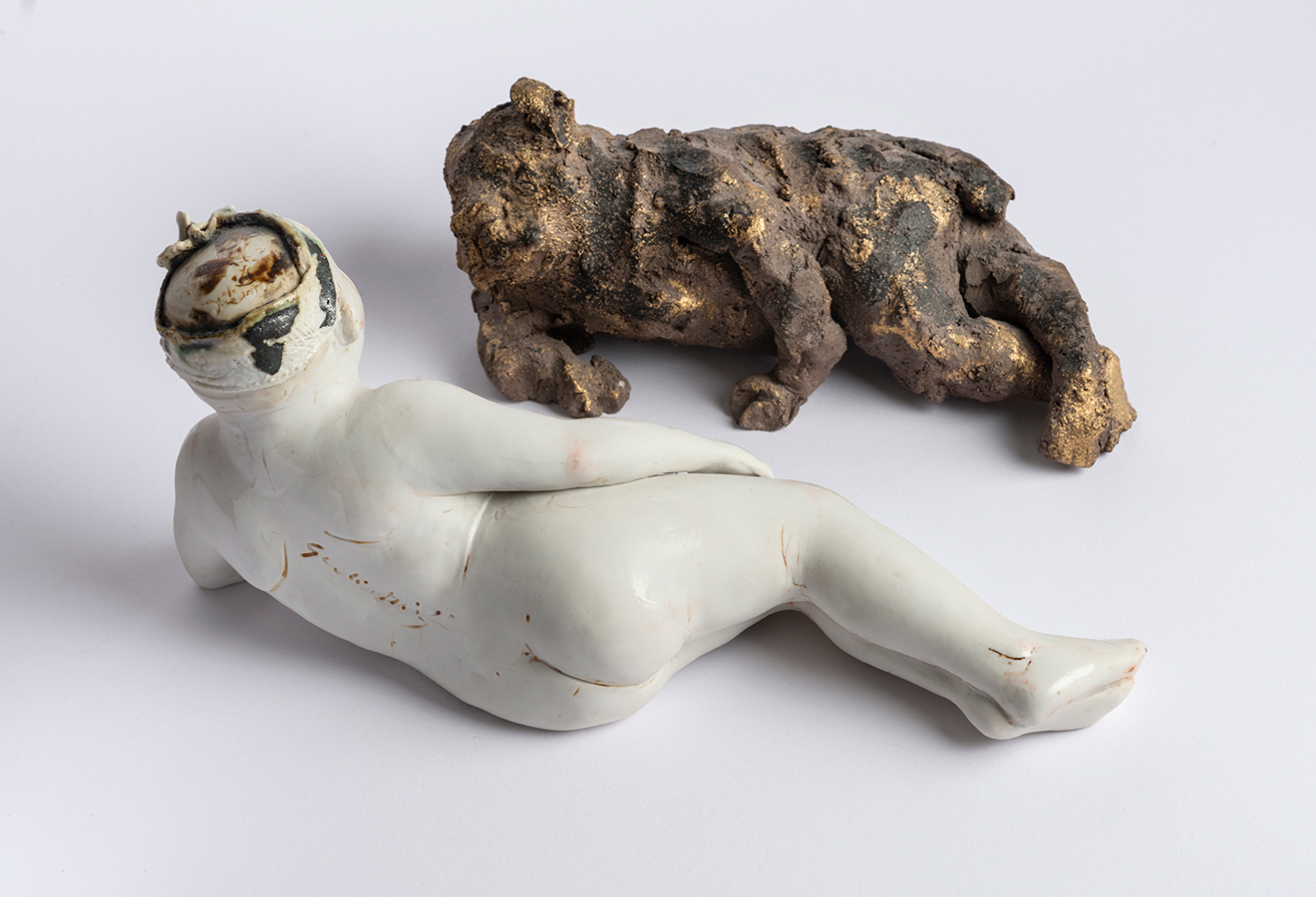 Foto: “Paula und John”, 2017 / 2019 Porcelana. 15 x 32 x 12 cm / 13 x 27 x 13 cm. (Fotografía: Tina Dietz.)