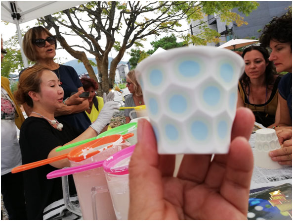 Por Italia acudieron 20 ceramistas: Anna Rita Fasano, Anna Ciampolini,Anna Maria Grippo, Antonella Cimatti, Beatriz Irene Scotti, Benedetta del Monaco, Carla Majorano, Deborah Ciolli, Fulvia Barbuto, Karin Putsch-Grassi, Loredana Avagliano, Maria Valerio, Martina Buzio, Miriam Gipponi, Mirta Morigi, Muky, Paola Ramondini, Rosalba Di Chiara, Rosa Tipaldi y Silvia Pedaci.