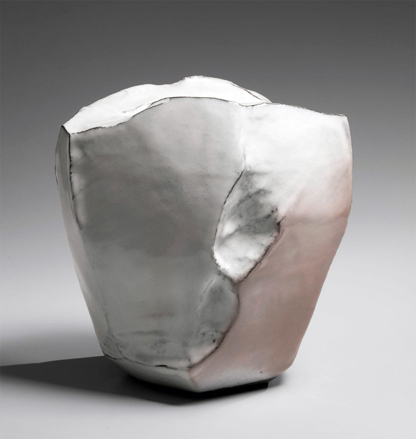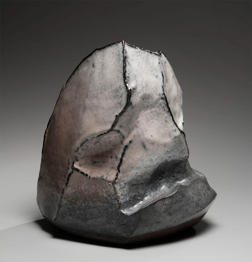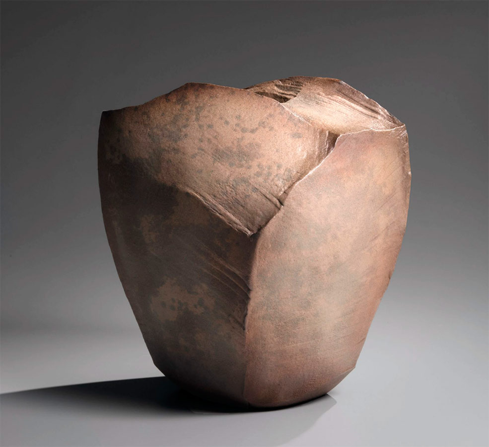 Los esmaltes “Hagi” son tradicionales en Japón desde el siglo XVI, y especialmente apreciados en piezas para la ceremonia del té. En el caso de Kaneta Masanao (1953) encontramos la tradición, ya que este cerámista es la octiva generación de su familia dedicada a la cerámica, junto a la innovación de la utilización de este esmalte para la realización de piezas que, como ocurre en ocasiones en Japón difuminan la línea entre lo funcional y lo escultórico.