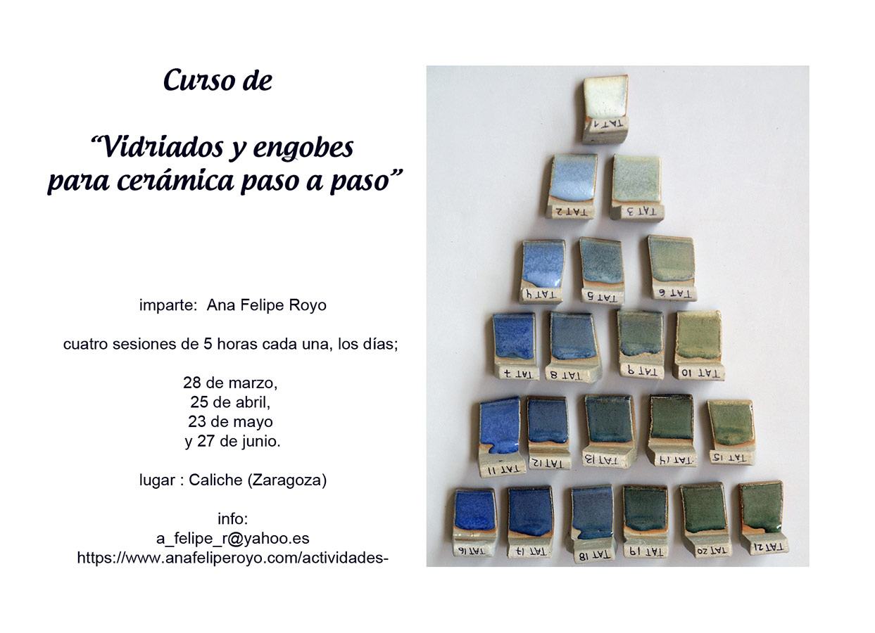 Durante los próximos meses, la ceramista Ana Felipe propone varios cursos en su taller de Caliche (Zaragoza) y otros centros en diferentes lugares de España, entre los que encontramos cursos de esmaltes, uso de pincel, rakú o porcelana
