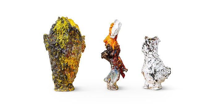 Xavier Toubes, España. ‘Cabeza Bicho and Cloud with Handles’, cerámica y esmalte, varios tamaños. 2019.