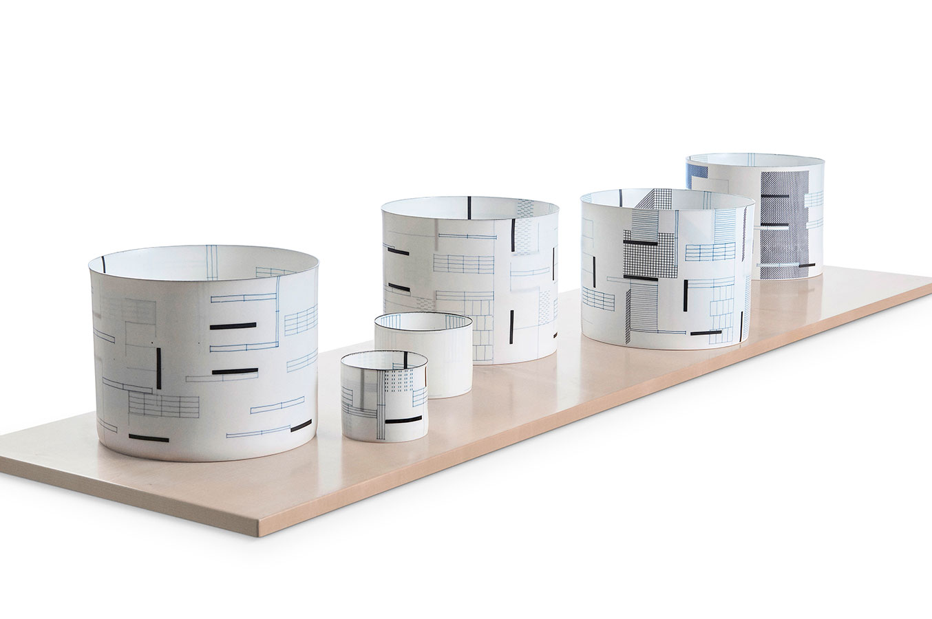 Tan finos que son prácticamente transparentes, estos recipientes de porcelana son delicados y sólidos a la vez. Su forma cilíndrica es insólita en obras de porcelana tan fina, creando un contraste explícito entre diseño y material. Los patrones geométricos del interior y exterior de cada recipiente establecen un diálogo mediante la translucidez del material, creando narrativas en clara alusión a la valla del título (‘Fence’).