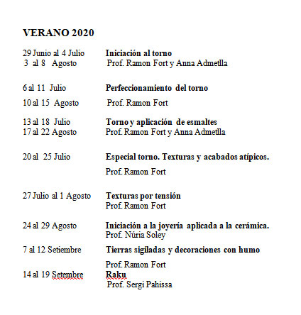 Ya se puede consultar el programa de cursos que Ramón Fort ha preparado para el próximo verano en su taller/escuela de Llert, Girona, para el que cuenta, además del propio Ramón Fort y Anna Admetlla, con Sergi Pahissa y Nuria Soley como invitados