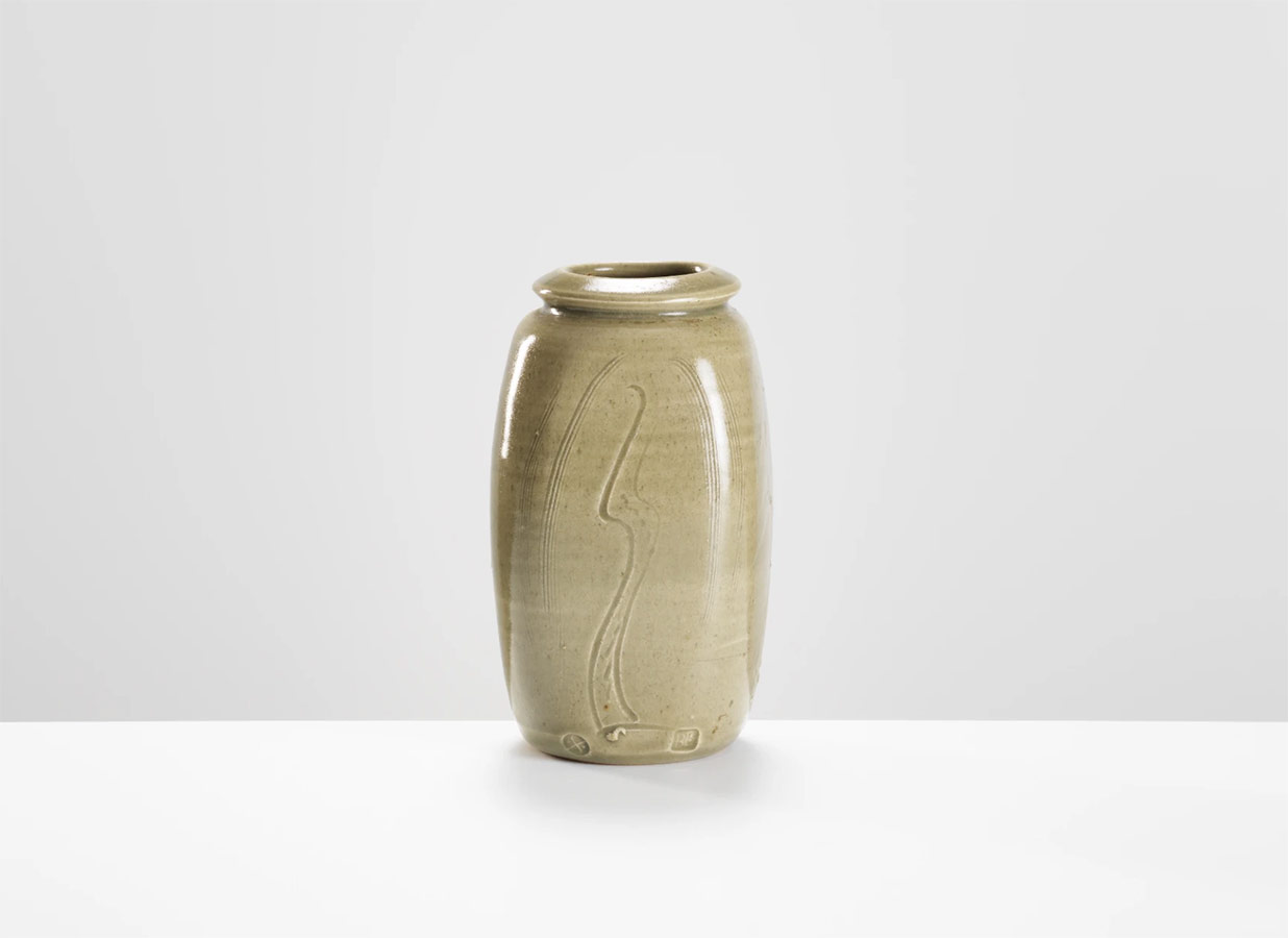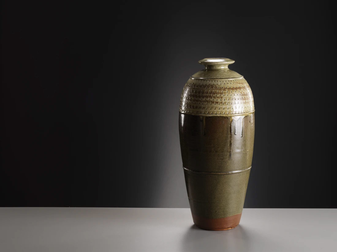 Creó la Leach Pottery en St. Ives, Cornwall en 1920, que se convirtió en un imán para ceramistas de todo el mundo que apoyaban sus puntos de vista sobre la cerámica y querían aprender de él ”(David Whiting, 2019). Durante los últimos 18 meses, se han reunido varias piezas de calidad de museos de todo el mundo, incluidas obras de los coleccionistas de Nueva York Nancy y Andrew Ramage, cuya colección, acumulada durante 20 años, incluye importantes obras tempranas de Leach y Cardew, particularmente vajilla. Junto a estas se encuentran obras de distinguidas colecciones japonesas, incluidas dos obras raras de Tomimoto Kenkichi y Kawai Kanjiro, ambas figuras clave en la formación del “movimiento Mingei”.