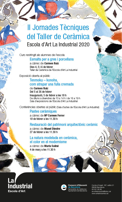 Durante el mes de febrero en la Escola d’Art La Industrial, en Barcelona, ofrecerá la segunda edición de las jornadas Técnicas del taller de cerámica, que incluirán un curso, conferencias y una exposición