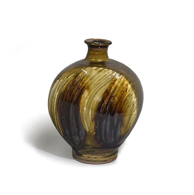 Masaaki Shibata. Jarrón con asas, 2019. Gres con engobes y esmaltes. 22,5 × 14 cm. (Foto: Takasumi Shibata.)