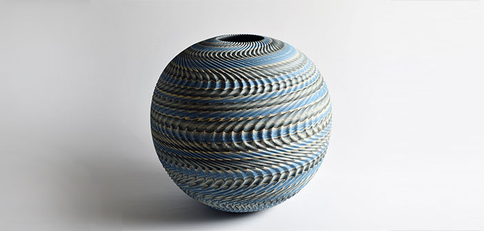 El ceramista japonés Ogata Kamio utiliza la técnica del neriage, que realza además tallando la superficie de la pieza hasta crear efectos ópticos