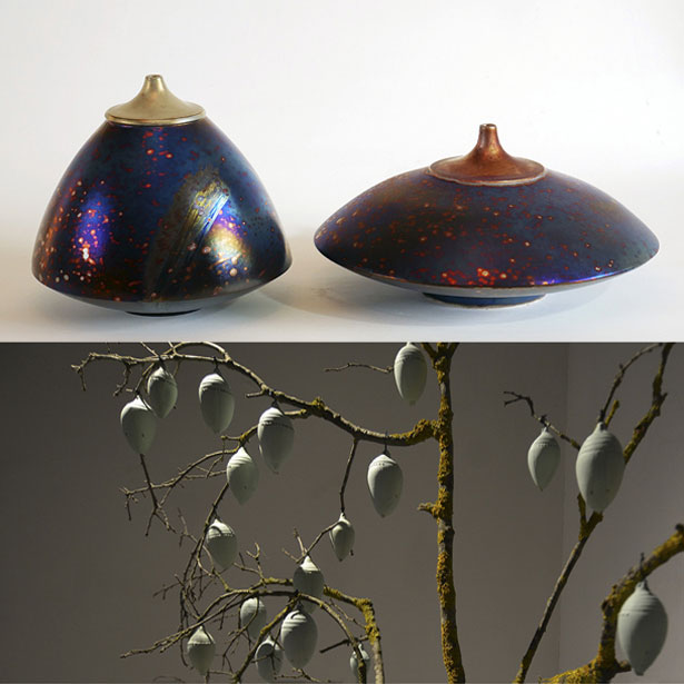 Ramon Pla presenta la exposición Luz y Color. Las líneas del contorno de las piezas quedan iluminadas por los colores iridiscentes del esmalte, los tonos metálicos hacen dudar del material del que están realizadas.