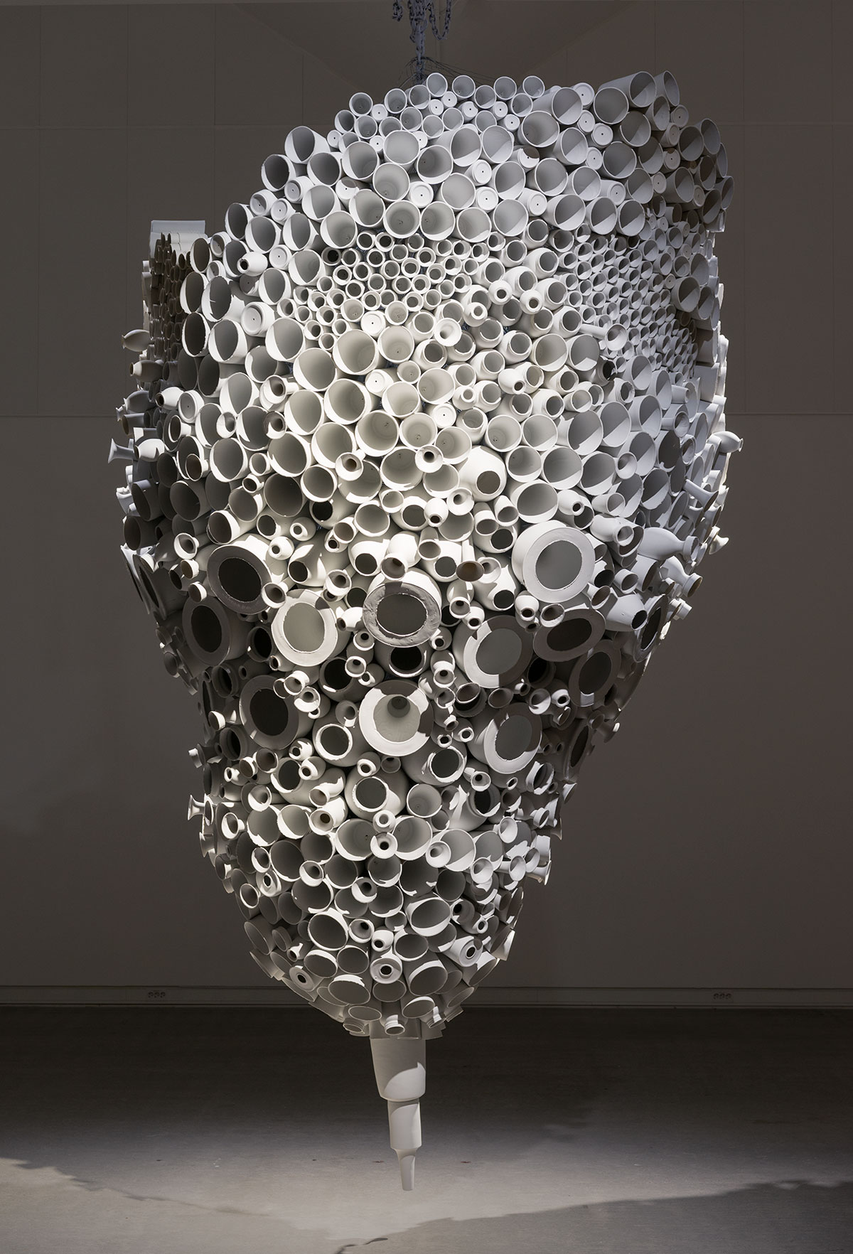 “Cluster of Vases”, 2017. 1800 piezas de porcelana de Porsgrund. Alto, 450 cm. Grenland Kunsthall. (Photo Morten Løberg.)