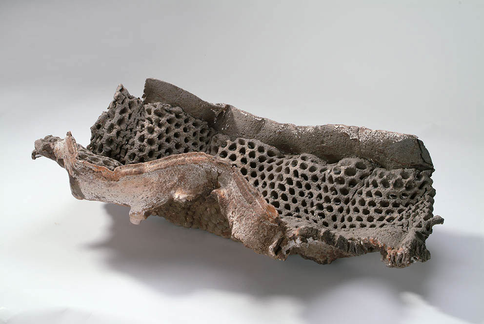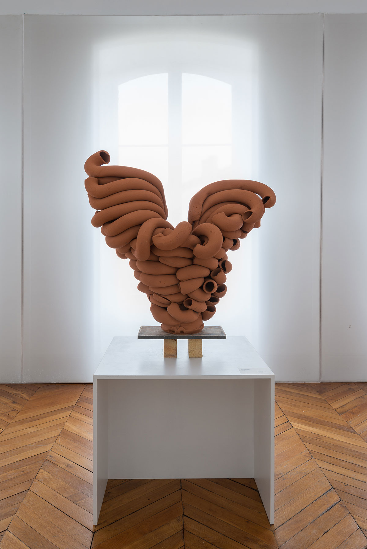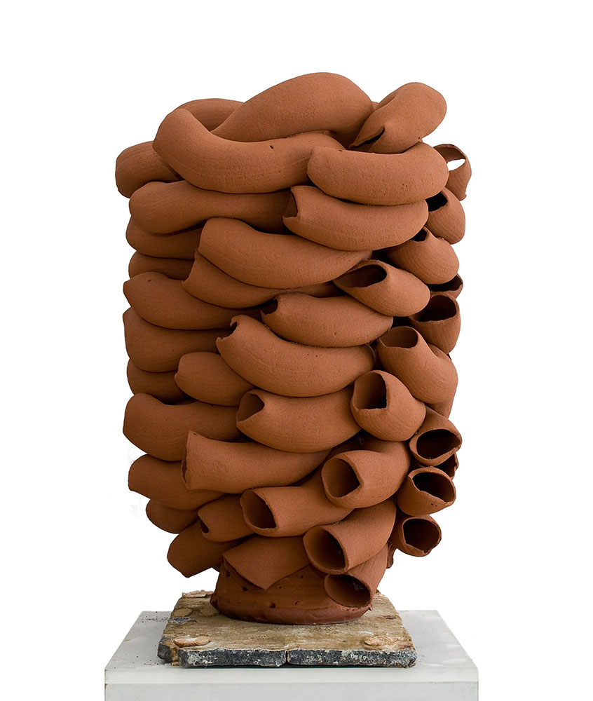 “Escultura de tubos”, 2014. Terracota. Alto, 110 cm. Museo de Cerámica de Sevres, 2018-19. (Photo Andreas Dyrdal.)