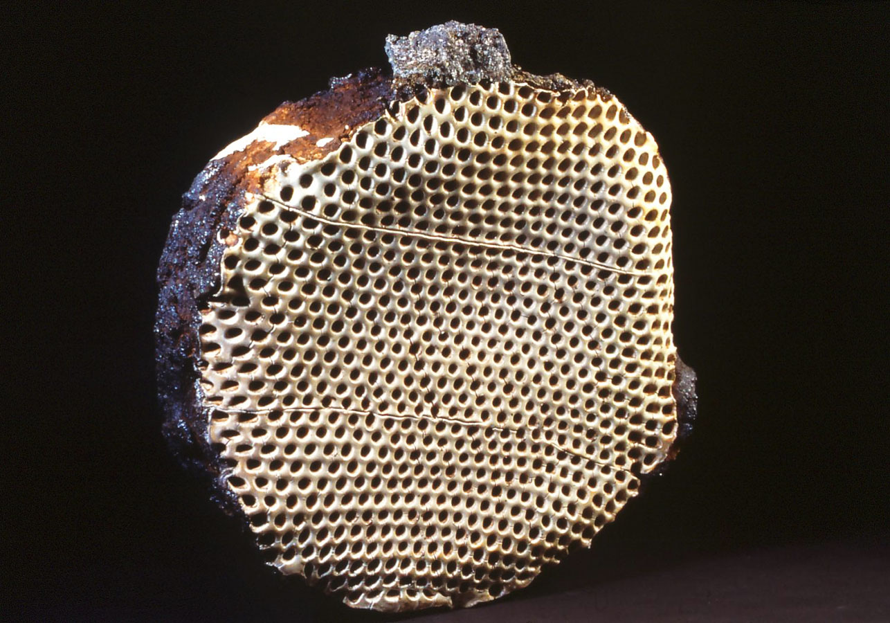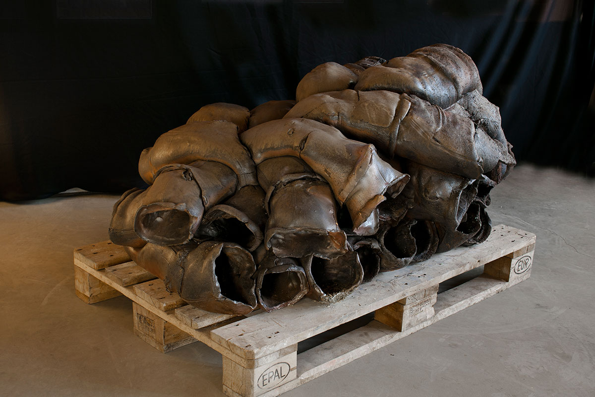 “Stack, tube forms”, 2012. Cocción en horno anagama, Anagama-fired, terminación con chorro de arena. Alto, 70 cm. (Photo Jørn Hagen.)