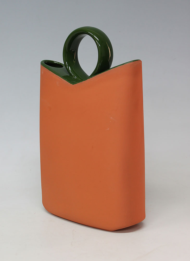 “Con este diseño he querido ir a la síntesis del botijo, integrando al máximo todos los elementos funcionales, como los dos orificios y el asa, recuperando elementos tradicionales como el barro poroso que permite al botijo refrescar el agua por transpiración y el barniz verde de arriba, rematado con una sobria asa.