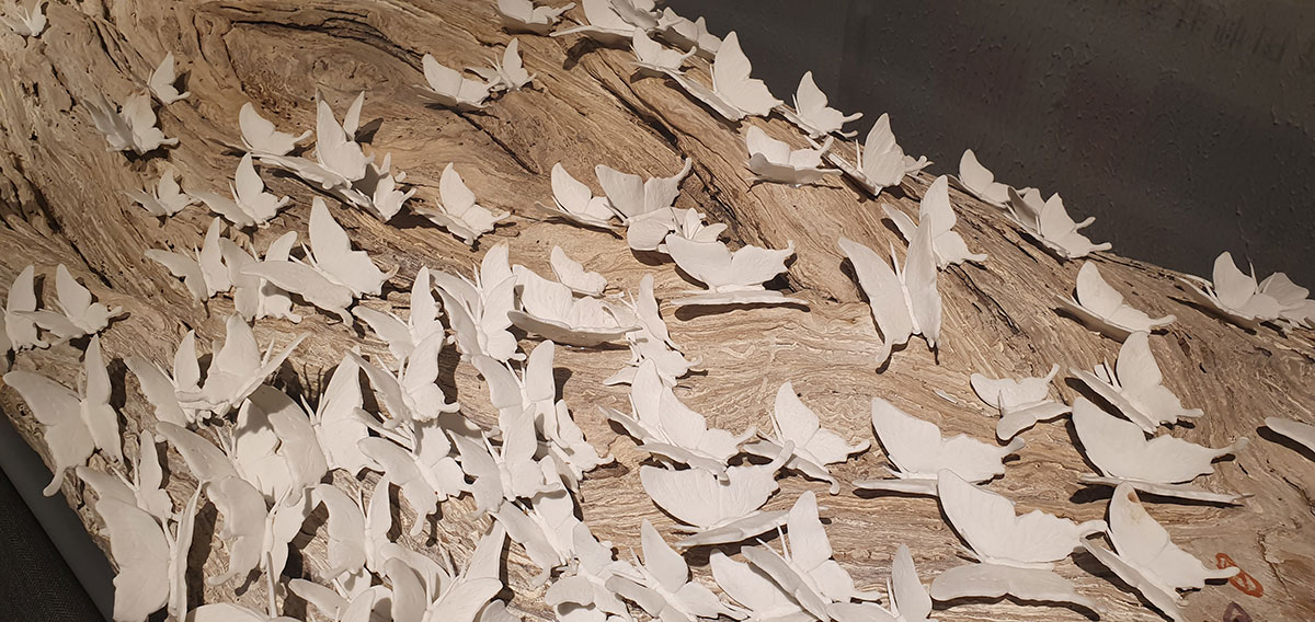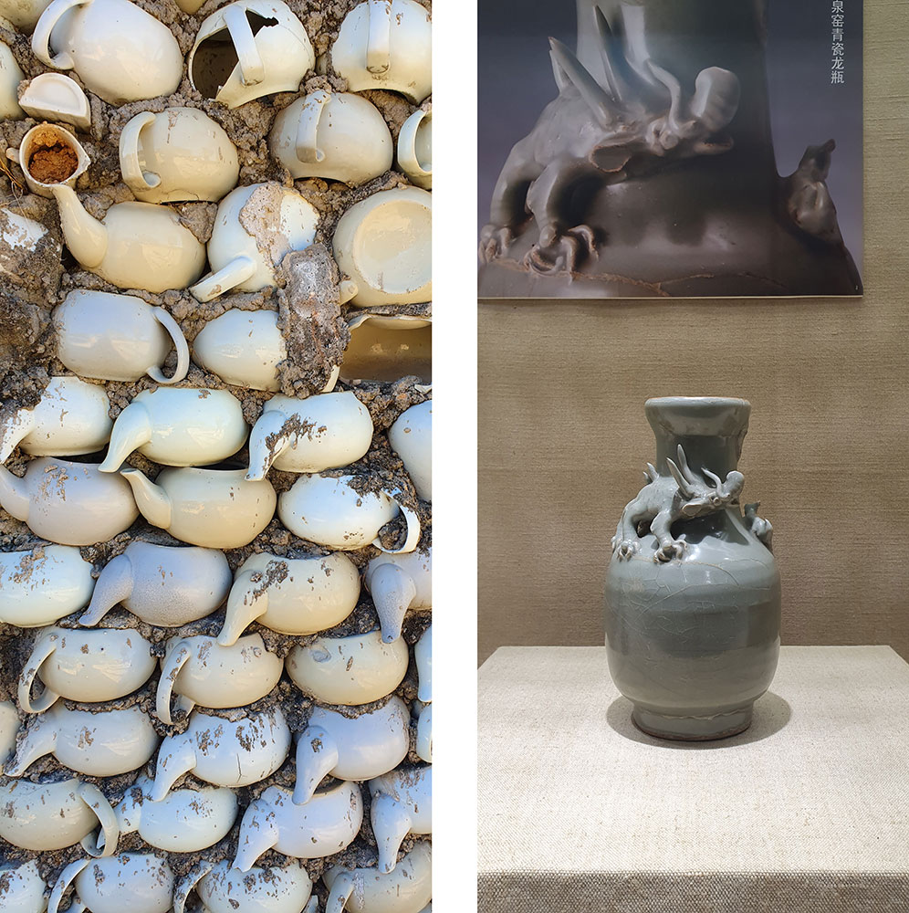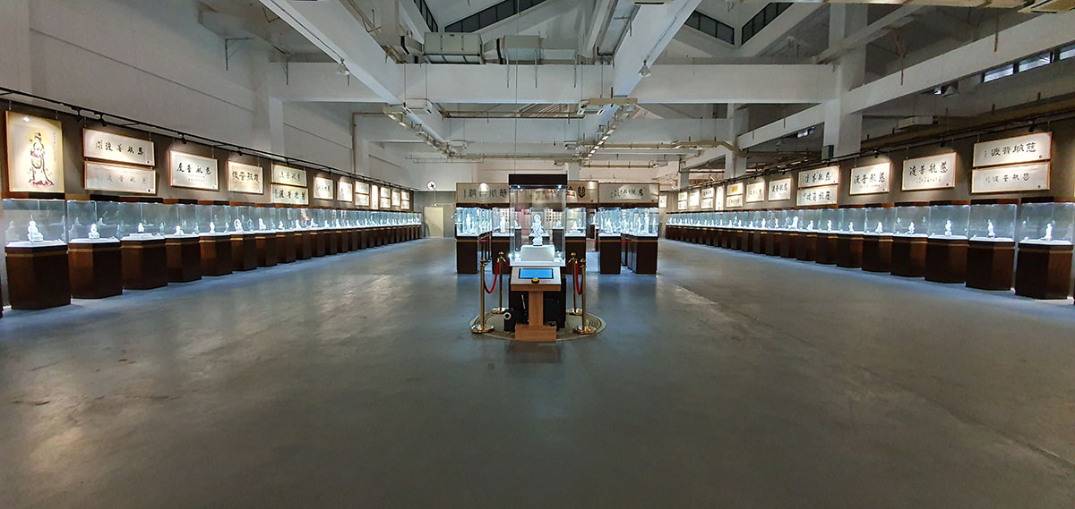 Nuestro periplo comenzó en Dehua en la provincia de Fujian, sitio dónde históricamente se producen los famosos blanc de Chine (porcelana blanca generalmente sin ornamentos pintados) desde la dinastía Ming (1368-1644). Varios museos de cerámica como el Dehua Ceramics Museum presentan estatuas budistas de Guanyin (bodhisattva de la compasión venerado en el budismo) y de guerreros, pero también vajillas y finas flores en porcelana, mayormente contemporáneas. Semejante manera de presentar las obras sería inimaginable en Europa, pero allá, la infinita multitud de vitrinas y objetos suele ser muy común.