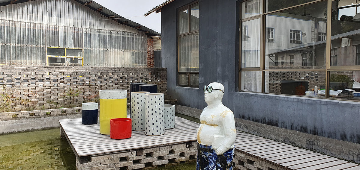 También visitamos The Opposite Studio, un taller y residencia de artistas en Sanbao, un pueblo en las cercanías de Jingdezhen, donde la dinámica y acogedora Sky pone todo a punto para que los diseñadores y ceramistas logren realizar sus proyectos. Allí vimos algunas obras de artistas europeos como François Ruegg (1954) y extranjeros. El artista colaboró con este taller para realizar una serie de obras que fueron expuestas en el Museo Ariana en Ginebra, Suiza en 2017. ()
